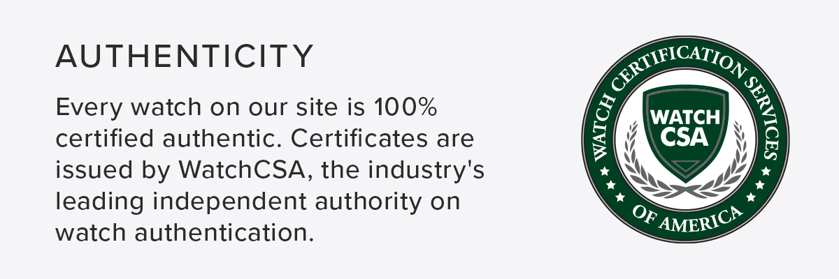 Certificates are issued by WatchCSA, the industry's leading independent authority on watch authentication.